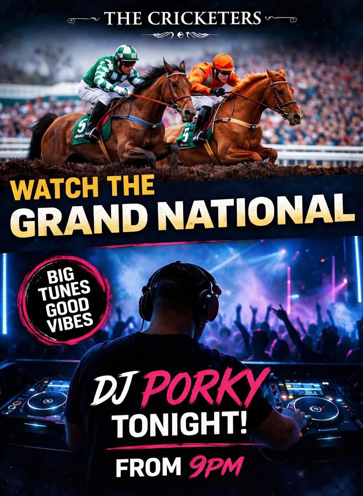 ☑️ Arsenal @ 12:30pm⚽️ ☑️Grand National @ 4pm🐎 ☑️ DJ Porky @ 9pm🎧 See you at the Cricks!